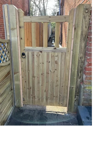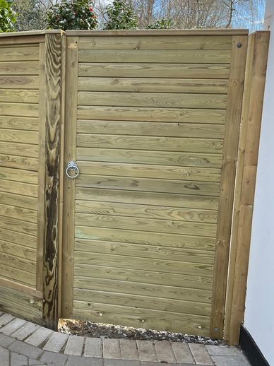 Constructed on site in 3 metre bays, using timber arris rails, morticed concrete posts, concrete gravel boards and timber featheredge boards